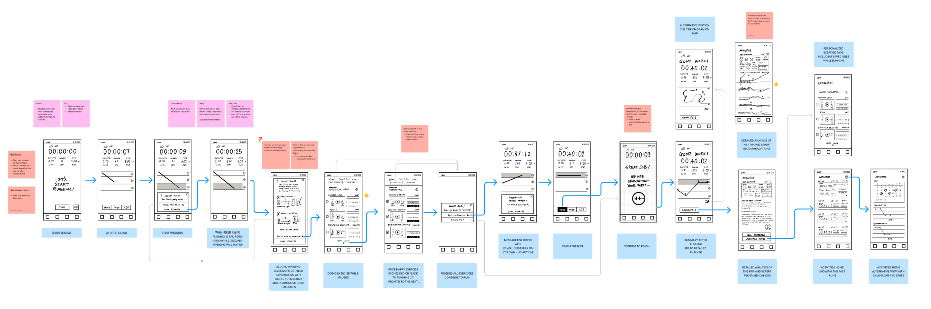 Prior to the user testing we briefly had an idea that this product may be good for a wider audience including casual runners, who may need more visual guidance and encouragement during the run. There was also an idea about mid-flight warning graph, which we decided to keep it audio only for fear of distructing runners. After the test we decided to focus on how to visualize activity analysis and insights.