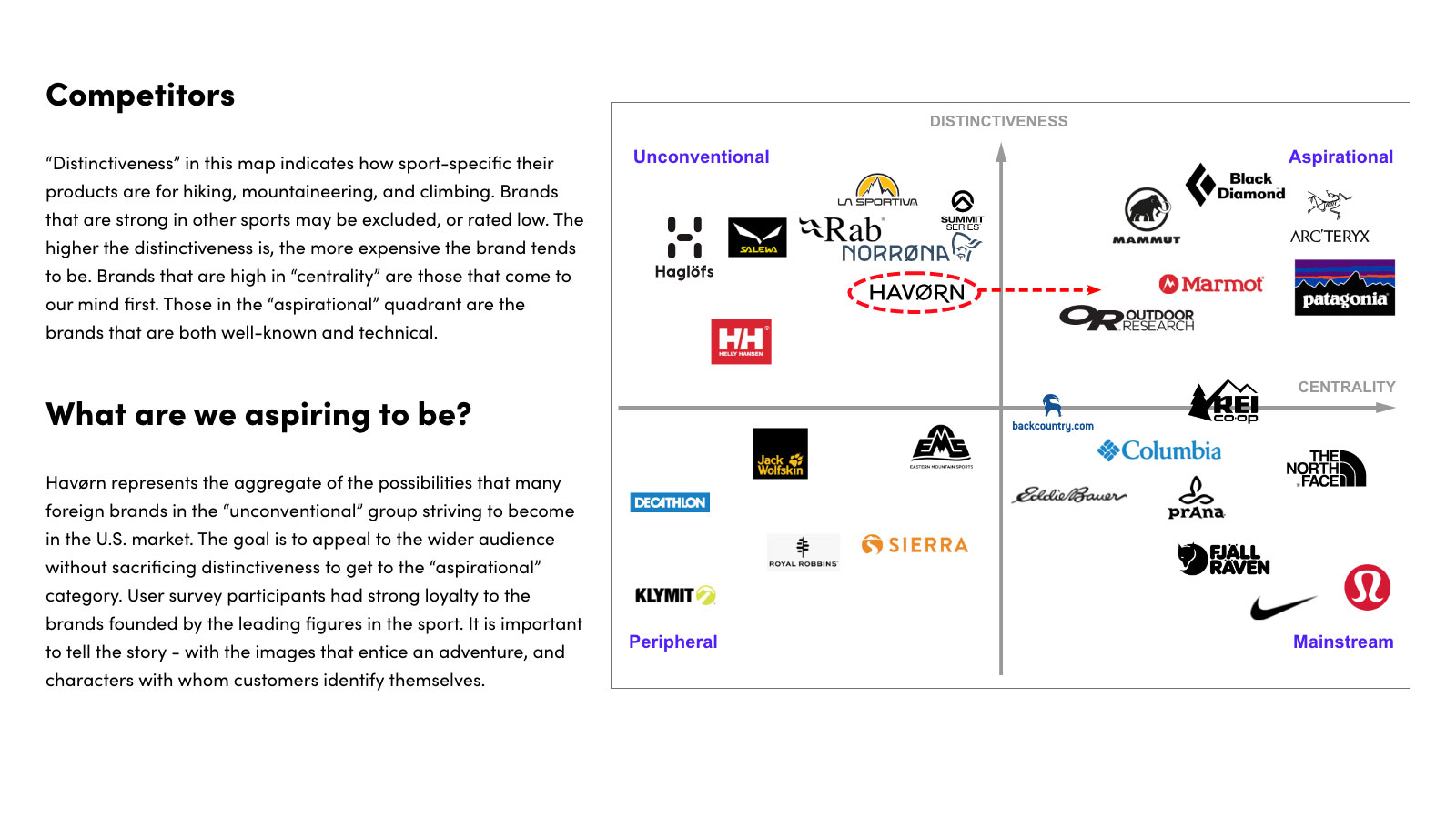 Havørn represents the aggregate of the possibilities that many foreign brands in the “unconventional” group striving to become in the U.S. market. The goal is to appeal to the wider audience without sacrificing distinctiveness to get to the “aspirational” category. C-D Map: A Better Way to Map Brand Strategy - Harvard Business Review