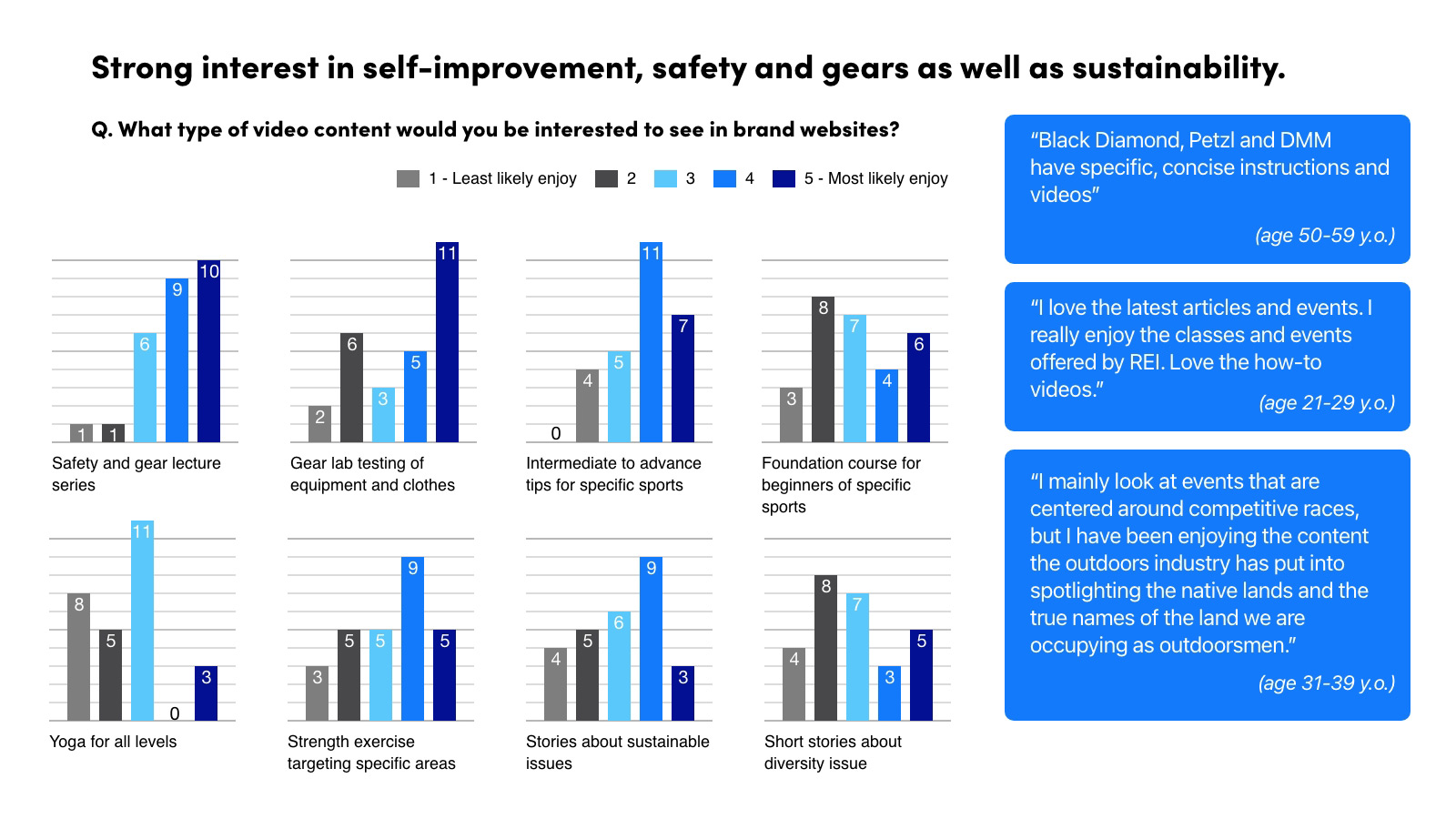 Climbers and hikers were attracted to brands that are distinctive and specialize in purpose-built products for climbing and hiking. They visit brand websites to check specifications but ultimately want to try them out in person.