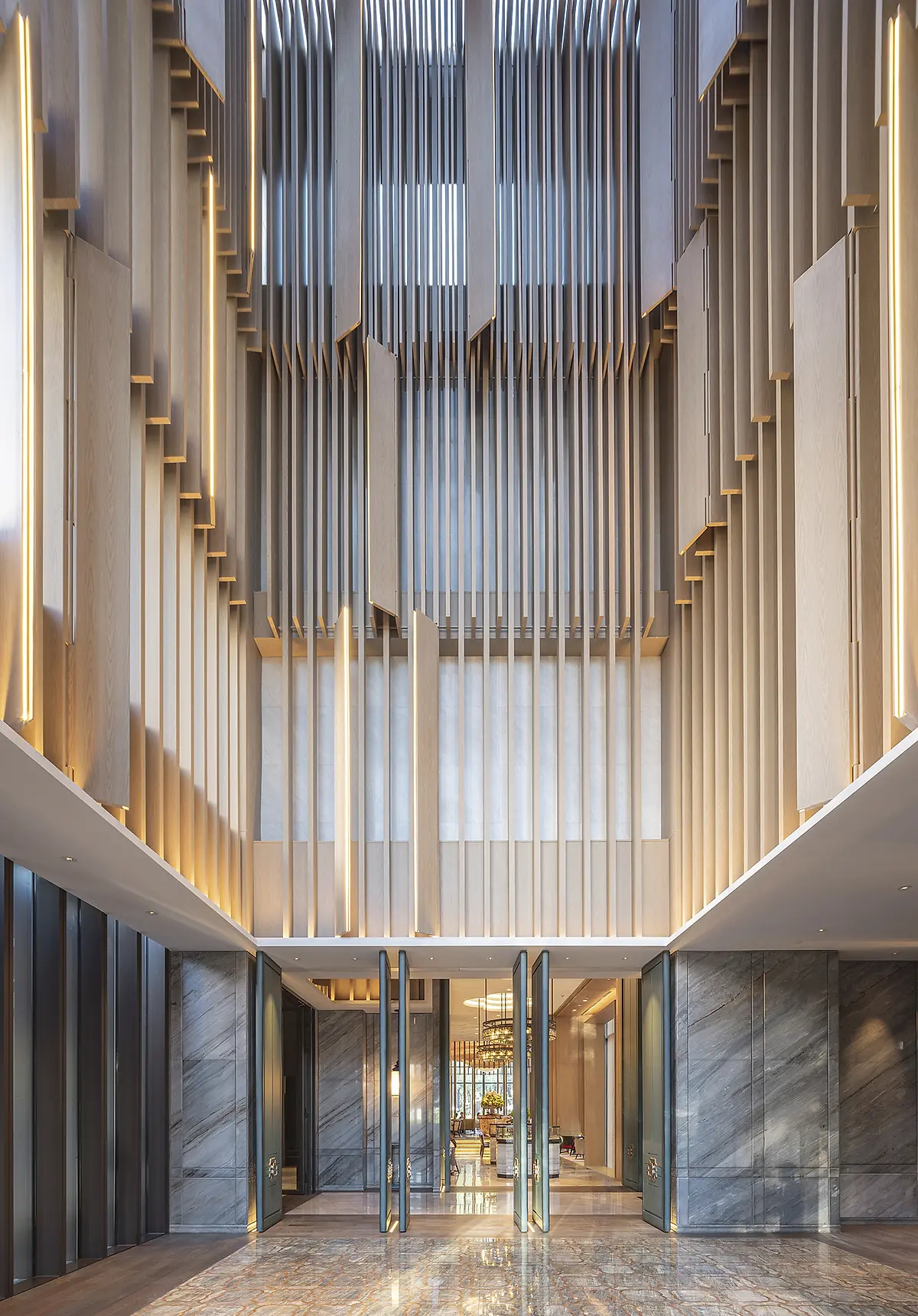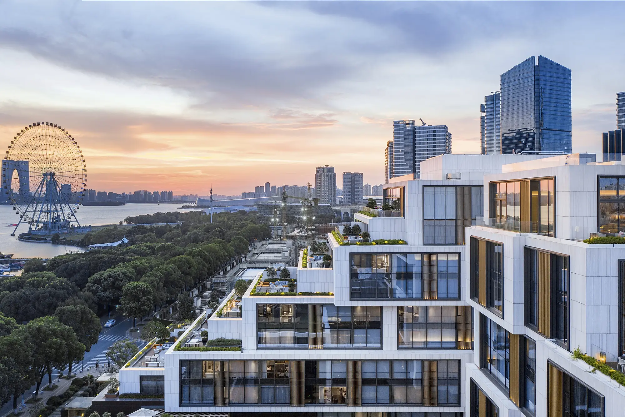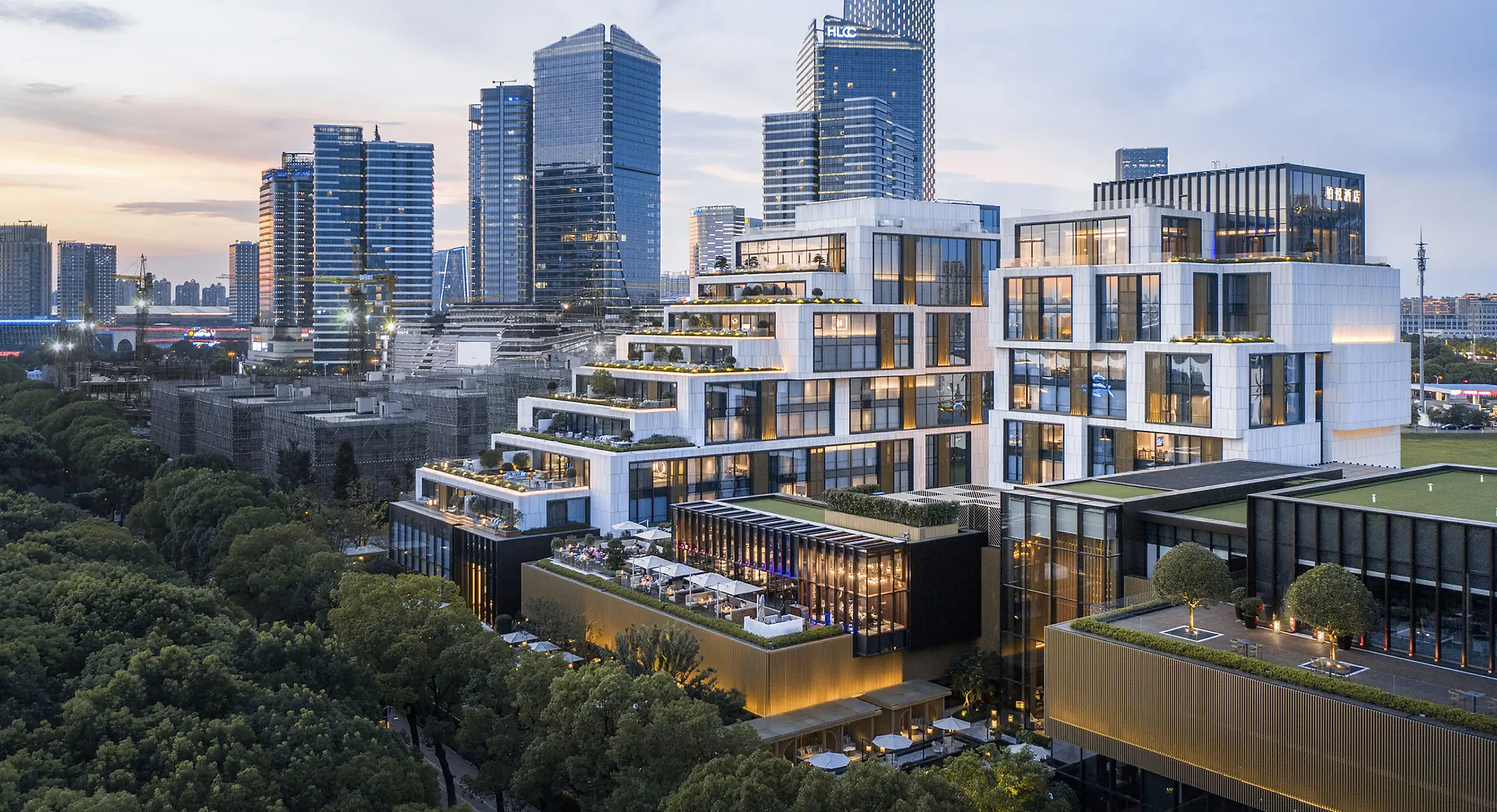 Located adjacent to a beautiful waterfront park, the Park Hyatt Suzhou reimagines the gardens of Suzhou in a residential-inspired hotel. The project aims to connect guests to Suzhou’s landscape tradition with rooms and amenities that open directly to external gardens. Within the stepped massing, many rooms have private terraces and all have landscape views. A showcase of craftsmanship, style, and design sensibilities, the hotel provides a contemporary, destination-level hospitality experience.
