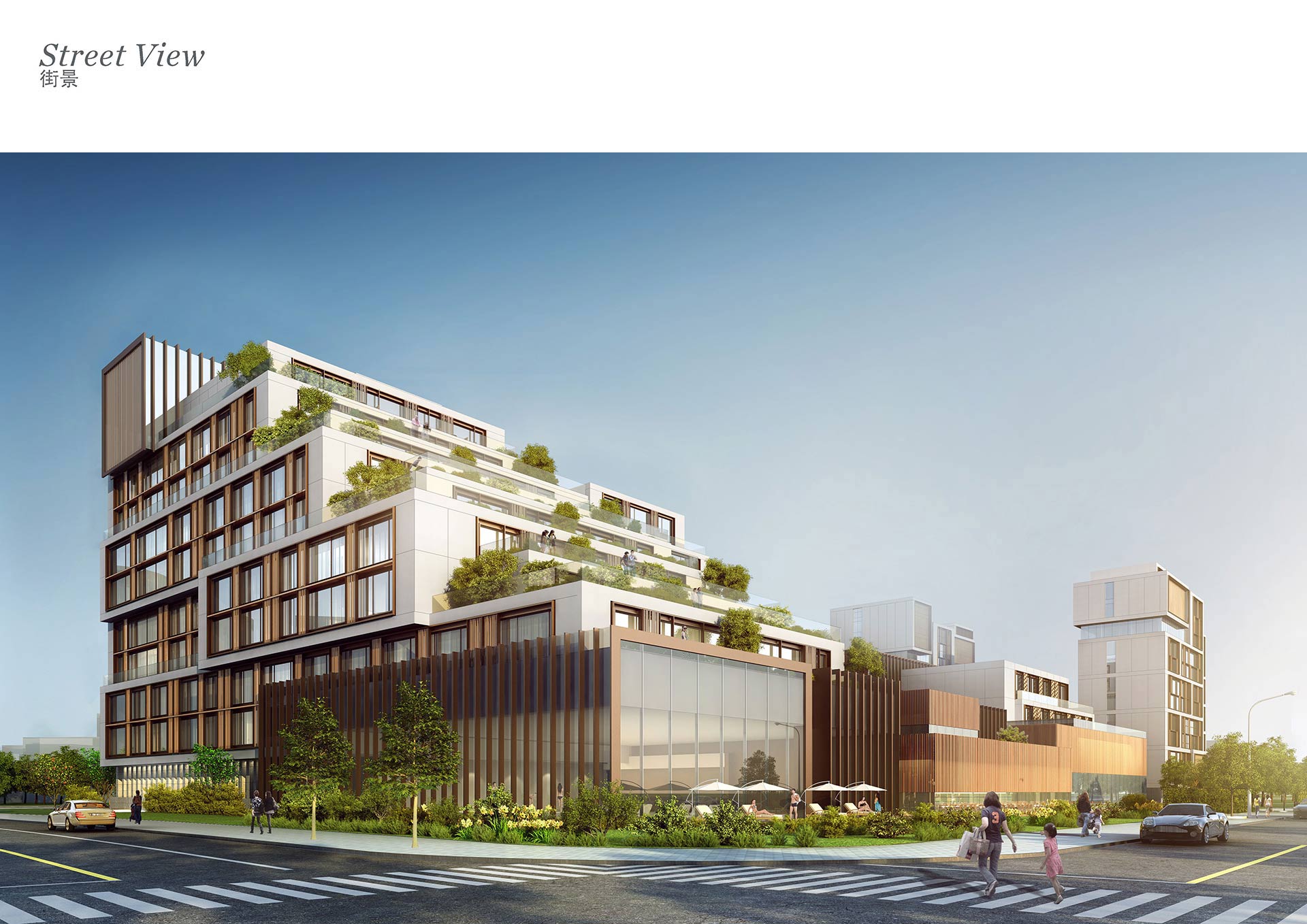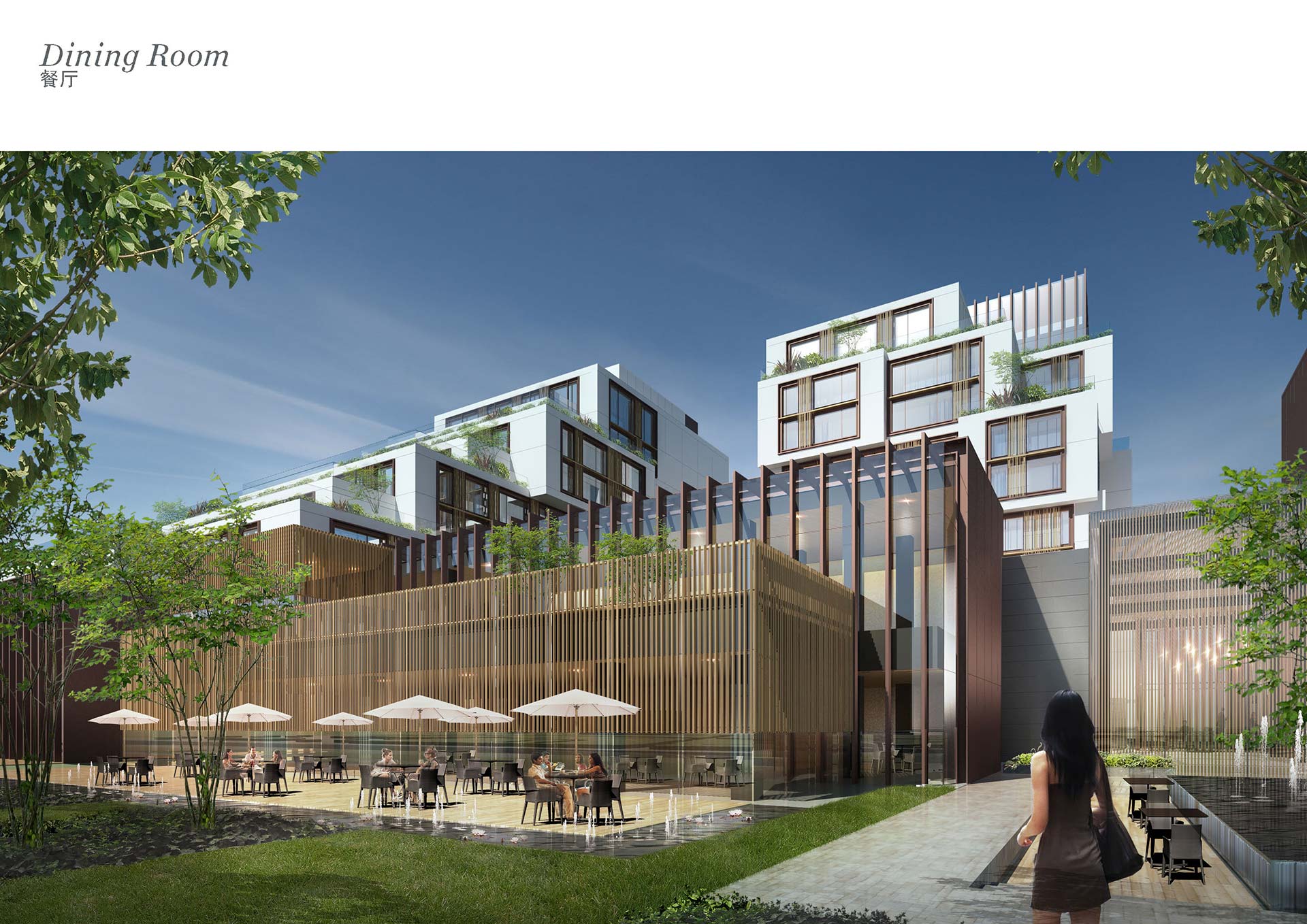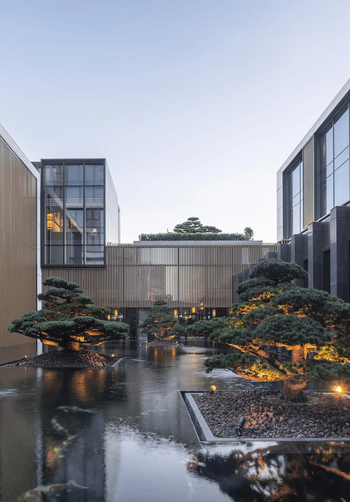 Inspired by the world renowned Suzhou Gardens, both the façade and the interior of the project connect the guests and residence to the natural surroundings. The filigree screens seen in the gardens were abstracted and reinterpreted into a simplified, ornamental screen on the buildings’ façade. This contrasts with the simpler primary terracotta cladding, conceived as a reference to the traditional Suzhou plasterwork that wraps many of the city’s buildings. With stepped massing and private terraces, each with exceptional views, the rooms are designed to provide an experience more akin to an intimate vacation home than a hotel.